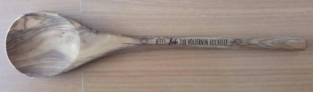 # Löffel personalisiert 30 cm aus Olivenholz mit toller Maserung und Wunschgravur am Griff